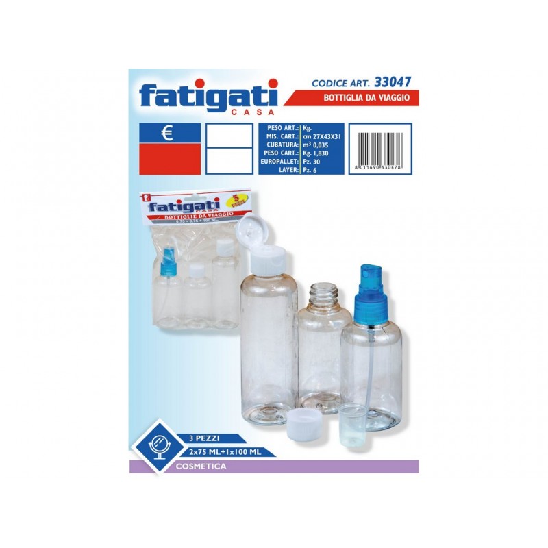 Bottigliette bottiglie in plastica per liquidi da viaggio set 3 pezzi.