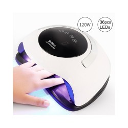 Lampada Unghie LED 120W UV Lampade Unghie con 4 Timer Macchina Gel Smalto Schermo LCD Sensore Automatico luminosa con 36 led. Semplice da usare con i sensori automatici di induzione a infrarossi e scegliendo sul display il tempo giusto per asciugare tutti i tipi di gel per unghie a basso calore. La luce emessa dalla lampada è più vicina alla luce bianca che non danneggia gli occhi o la pelle! Garantendo che la colorazione del gel per unghie non si stravolga. Doppia sorgente luminosa a LED, 36 perle leggere, che possono asciugare efficacemente diversi tipi di gel per unghie. Induzione intelligente a infrarossi, quando si raggiungono le mani dentro e fuori, la luce si accenderà e si spegnerà automaticamente. design portatile per un facile trasporto, bello e pratico.